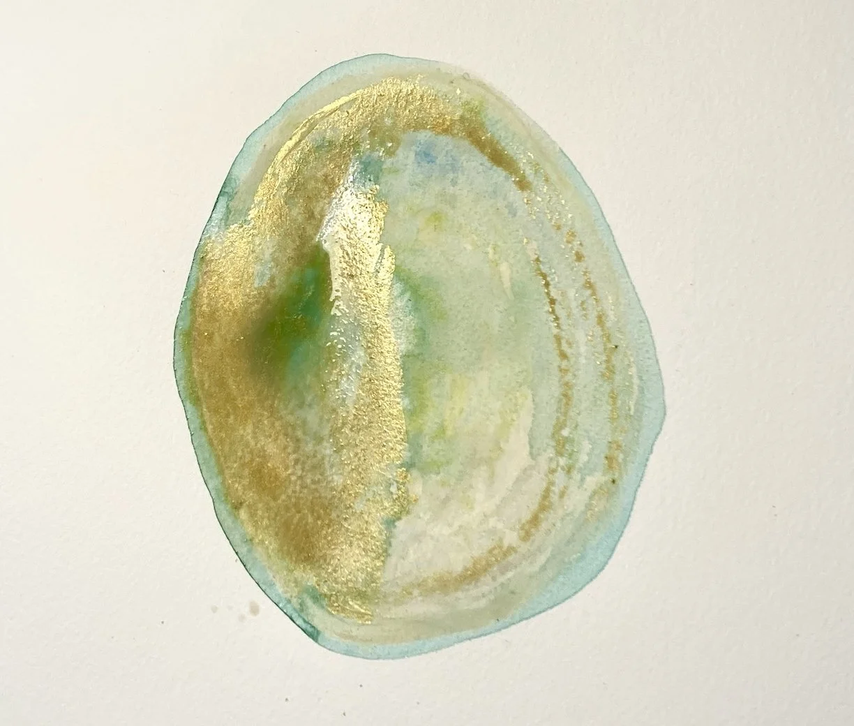 Untitled, 2026, gouache, human milk fat, gold, 15” x 17”