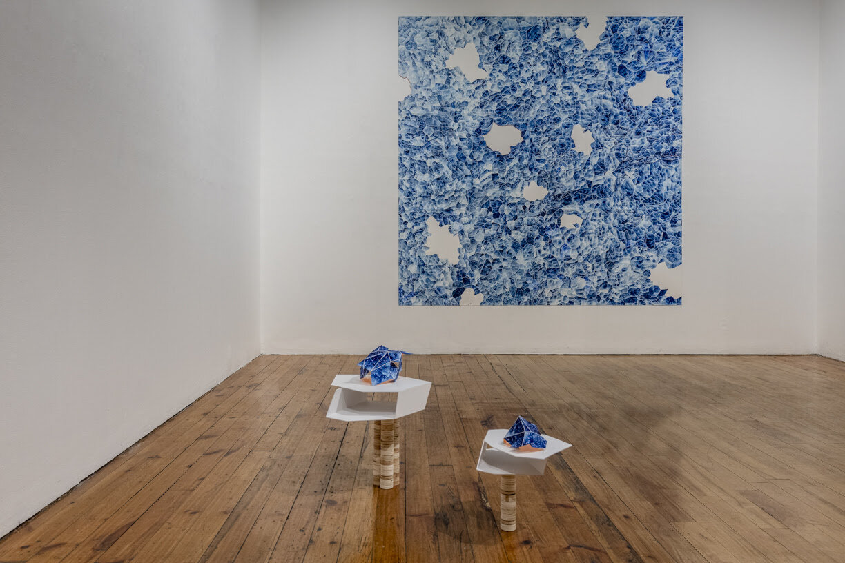 What I Tell the Sky, and What the Sky Tells Me is an exhibition of new large scale drawings by Leah Garnett. Garnett’s work often explores how space (both cosmological and architectural) is represented, occupied, felt, and fabricated. Though distinct works, the drawings in What I Tell the Sky, and What the Sky Tells Me, share questions about gravity: how it shapes cosmological space; how it effects structure and form at all scales; and how it feels in the body.
